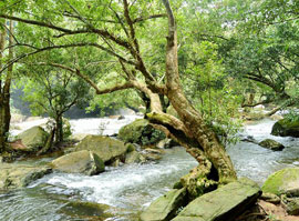 Thommankuthu waterfall is a seven - step waterfall located in forest. A trek of 12 km through the forests is possible